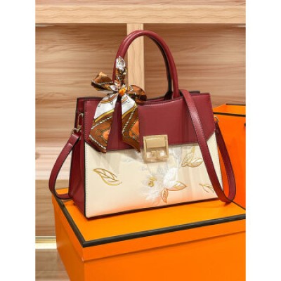 BEBIPRO+Practical Bag for Mother's Birthday Gift Women's Handbag Red Wedding Bag Lotus Embroidered Red Bag