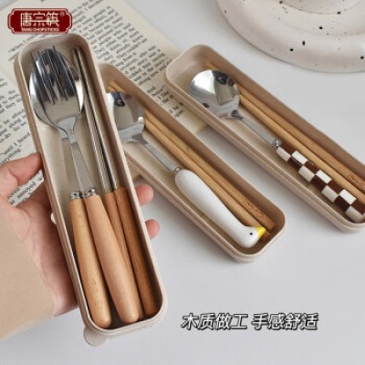 Tang Zong Chopsticks, Stainless Steel Chopsticks, Spoons, Forks, Portable Boxes, Tableware Set of 4, Adult Student Travel C1800