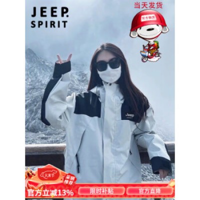 JEEP Charge Coat Men's and Women's Three in One Coat Spring and Autumn Season Top, Ivory White [Single Layer] (B) S