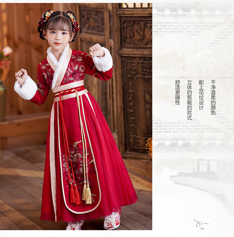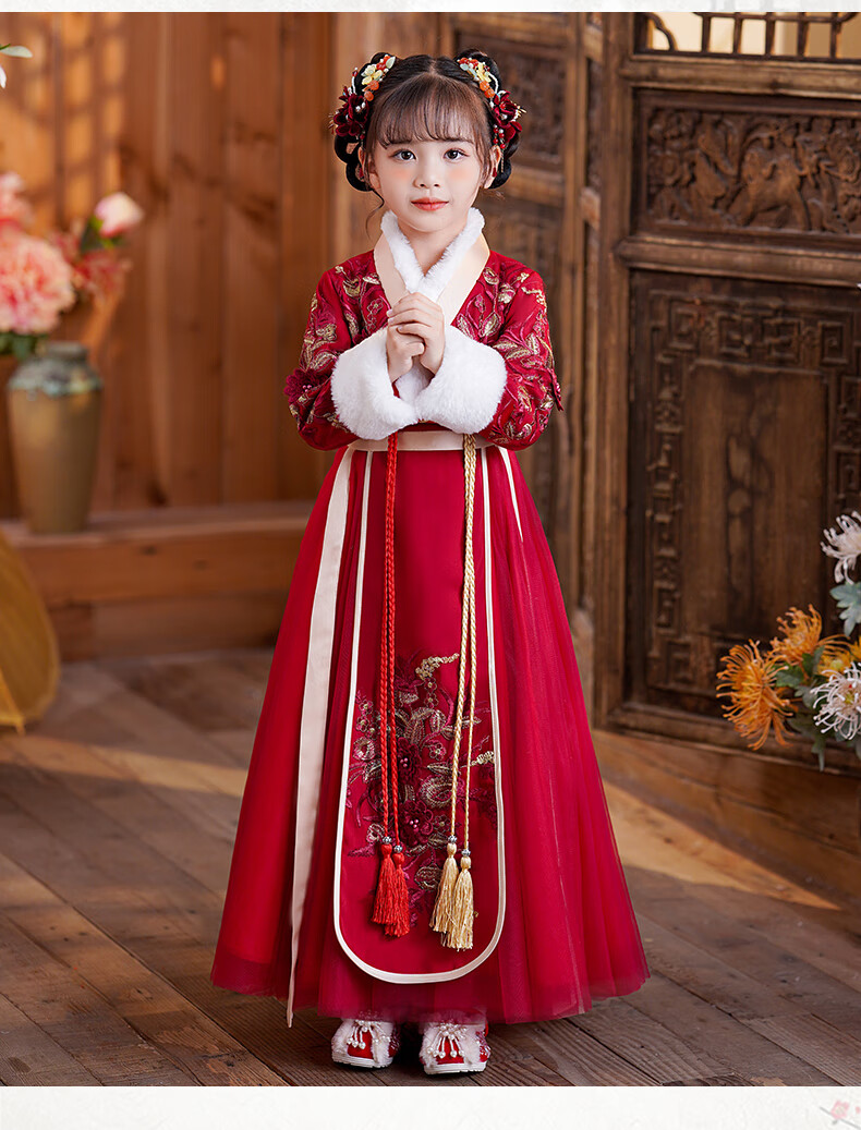 商品名称:安妮优儿女童汉服冬款拜年服女宝中国风2023新款古装过年冬季儿童新年唐装 裙子加披风 130